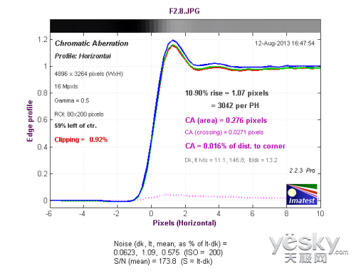 (蔡司Touit 12mm f/2.8镜头中心水平方向色散测试结果)