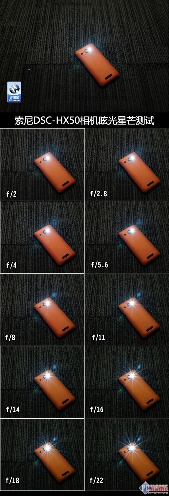眩光的问题也非常重要,我们通过在各级光圈下面对镜头的冲光进行了测试,看到在各级光圈下的观光控制都非常不错,但是依旧有鬼影的存在,另外我们看到在最小f/22的时候光线呈现了锐利的放射光。