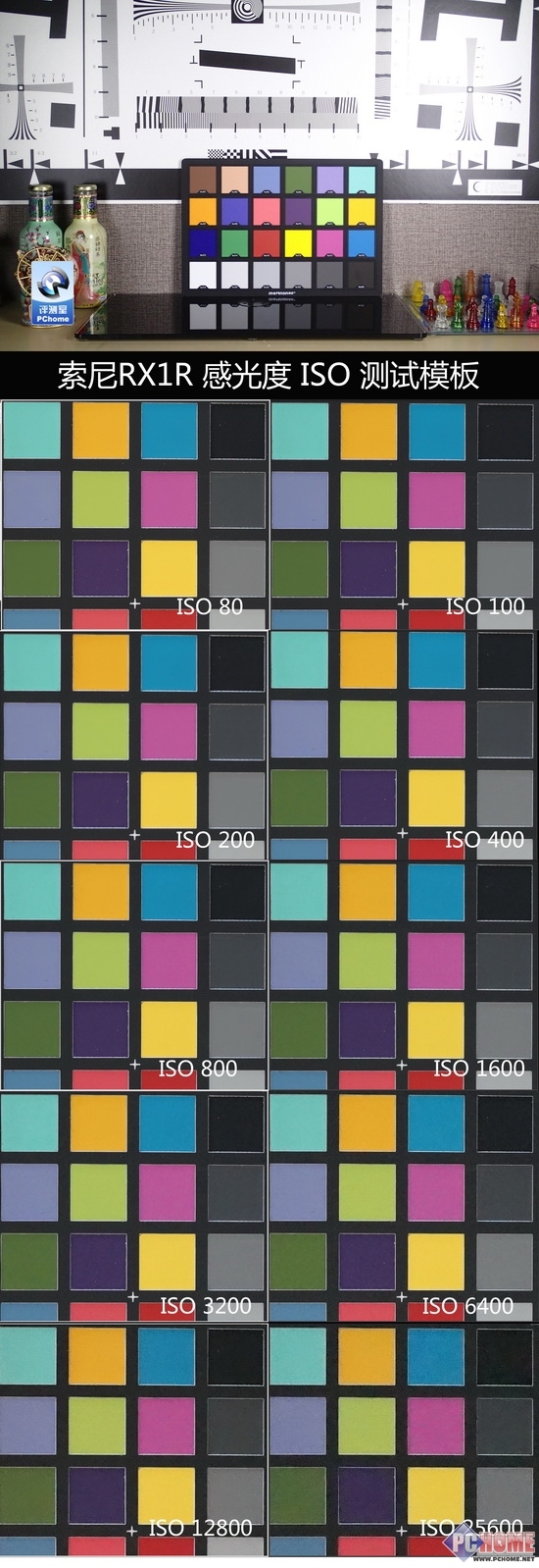 ISO测试板上的噪点能够清晰的反映出这款产品是否在画质方面真的有提高,但是在这个环节中,我们更喜欢用事实说话,我们将ISO测试板放置在合适的对焦距离,并且将本次测试的RX1R调节5.6的光圈值,白平衡自动,矩阵测光等基本的参数,其中最重要的就是将降噪系统调节至标准。