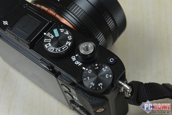 在机身右侧位置曝光补偿和快门按键均在此处,另外"C"按键是附加功能选项按键,在机身菜单中可以对功能进行设置,快捷调节ISO等一些常规的功能。模式拨盘的位置靠近快门,也方便了用户在调节功能之后能够快速操作拍摄。
