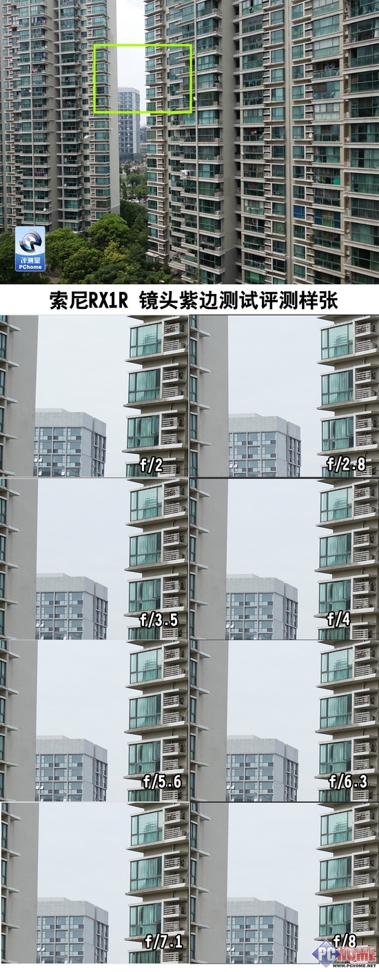紫边问题困扰着各个厂商的镜头,索尼RX1R在最大光圈的时候依旧拥有,比较明显,在f/3.5的时候也依旧存在,尤其是在边缘区域,但没有那么明显,在f/5.6左右的时候才有了明显的改善。f/6.3的时候全部消失。