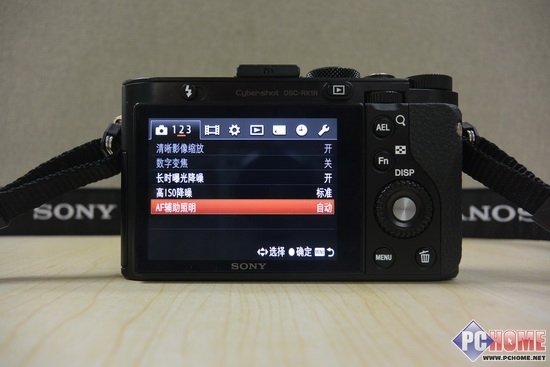 拍摄照片的时候RX1R会自动触发AF对焦辅助灯,这里可以选择开启或者关闭或者自动来控制。另外高ISO降噪也可以进行自我控制。清晰影像缩放功能依旧被植入了在索尼RX1R中。