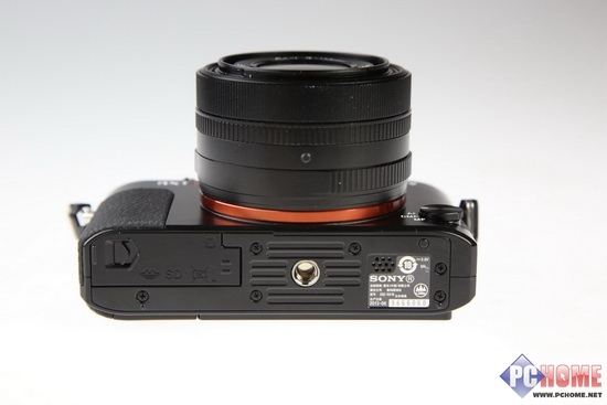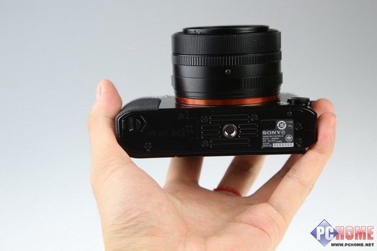 机身底部的序列号和各种细节方面的保持依旧沿用了上一代RX1的设计风格,序列号,脚架孔,电池仓和存储卡槽均在机身底部。值得一说的是RX1R的镜头底部设计的一个触点,是索尼为了保持机身和镜头的水平进行的专门设计。