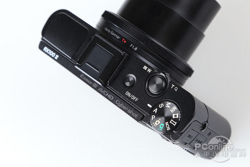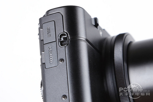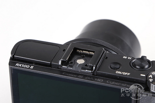 在机顶上,只有RX100 II是具备标准热靴的,RX100不具备,同时RX100 II的热靴具备专用的接口,用于连接专用的EVF取景器,顺带一提,RX100 II的EVF其实在规格上和NEX的EVF是一样的,只是接口不同。