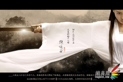 小龙女题材的古装片,风格大气、气势恢宏。局部的拍摄手法却更加荡气回肠,展开铺垫,充满想象。而古体字的添加,也是照片的点睛之笔。
