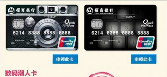 这张相机卡面的招行卡,是一卡通M+卡中的数码潮人卡。与它同组的卡片是一张键盘卡面,适合Geek类的科技达人。