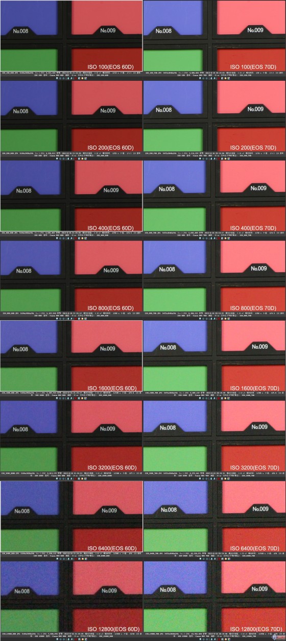 通过参数对比,我们不难发现,佳能EOS 70D与上一代EOS 60D相比,各方面的提升非常明显,在这里我们可以非常直观的看到提升点的幅度;与尼康DF7100相比,EOS 70D给人的感觉是更贴近日常使用,包括近期体验的过程中发现,无论是高感光表现、翻转触摸屏、连拍及Wi-Fi功能以及最为印象深刻的全像素双核AF的作用凸显。而尼康D7100在机身性能、对焦时精确锁定、动态范围等实力尽显,更趋于专业高端。两者设计风格不尽相同但趋于同归,差异在两款相机上的表现将逐渐缩小。