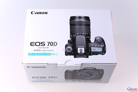 首先,我们依旧来看一下佳能EOS 70D的外观情况。拿到的佳能EOS 70D已经是市售零售版,系EF-S 18-135 IS STM套装。市售另外还有搭配EF-S 18-200 IS套装,这两个焦段搭配也是非常实用。
