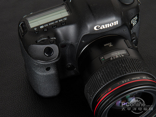 说到手柄的话,RX1R为了极致的便携,手柄位置只有一块蒙皮作为防滑之用,其实实际使用起来,这样并不会有手滑的情况,因为机背后还有相应的防滑设计,所以拿起来还是挺稳的。而5D3宽厚的手柄我想就无需多介绍了吧?