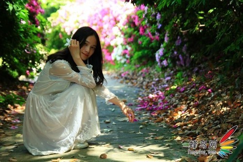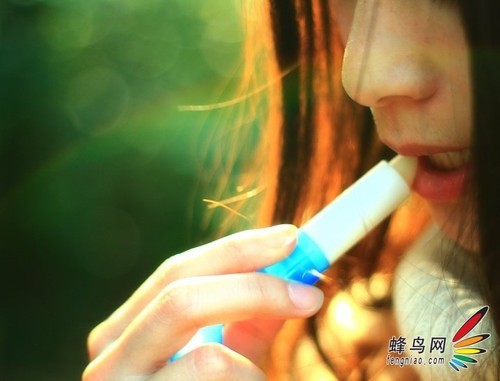 然后,这张照片算是抓拍的,不是摆拍。我当时看到这片背景,然后拉她过来给她拍,拍了几张傻乎乎的表情,觉得找不到感觉,然后我就开始调设置 了,把饱和度调稍微高点,根据刚才试拍的几张来调整曝光补偿,光圈是f2,ISO是200。这时她嫌无聊,于是拿出润唇膏打算涂,于是我说你涂吧,不过你 稍微转一下,然后上去调整了一下她的朝向,使得她脸的朝向大约与阳光成120度角的样子,同时迅速检查了下相机是否处在连拍状态。(注意这个很重要!拍人 像特别是抓拍人像,请选择相机的连拍模式!即使你的连拍速度很慢,也比单拍强百倍)然后她一边涂我就一边微微蹲着咔嚓咔嚓地拍了好几张涂完就不拍了,涂的 整个过程大概也就10秒的样子。