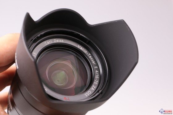 索尼Vario-Tessar T* E16-70mm F4 ZA OSS包装内还附赠镜头软套和遮光罩。这枚遮光罩材质并不是金属材质,而是工程塑料材质,非常轻巧。