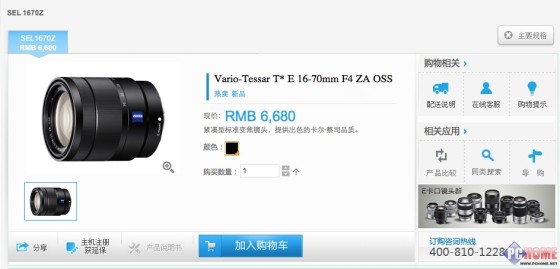 Vario-Tessar T* E16-70mm F4 ZA OSS在索尼官网上的售价