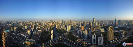 即便是超广角也很难完整的将景色收纳到镜头中,因此一如既往的采取前期拍摄后期拼接的方式拍摄全景,记录拍摄上海城市风情。得益于Vario-Tessar T* E16-70mm F4 ZA OSS优秀的畸变控制,因此在拼接完成后,依然可以看到画面中的建筑是基本还原了实际生活中的情况。
