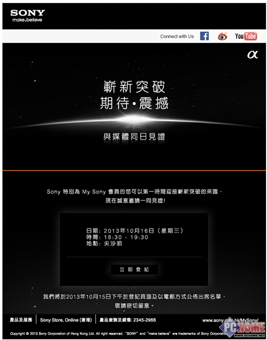 索尼香港官网日前发布邀请函,将定于2013年10月16日举行发布会。至于发布什么小编这里也不多说什么了,相信大家都知道的。以下是确定或可能发布的新品列表: