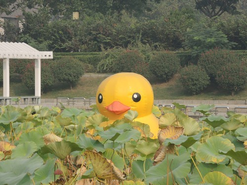 使用长焦端、小光圈拍摄。对焦点选择在“高仿大黄鸭”身上,小光圈提供了大景深。从照片看,P7800的色彩还原真实,照片清晰锐利。黄色中有细节,没有出现色彩溢出。