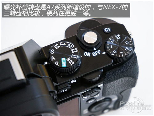 索尼A7的三转盘设计与单反相机类似,并且新增了曝光补偿转盘,总的来说使用便利性要比NEX-7的并列转盘好得多,算上五维键上的转盘,A7达到了4 转盘操作,如果要使用顺畅的话,拿到机器第一件事,就是理顺转盘功能,这样,盲拍会变得极其顺手,而且,你会爱上A7的操作。