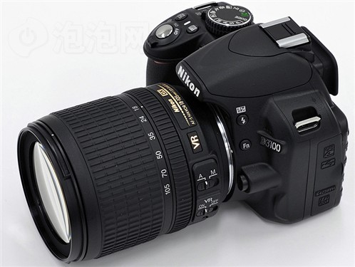尼康D3100套机(18-55mm VR)机身尺寸124×96×74.5mm,重455g(仅机身)/505g(包含电池和存储卡),相机正面搭配18-55mm焦距镜头,等效焦距27-82.5mm,最大光圈F3.5-F5.6;背面为3.0英寸23万像素TFT液晶屏,可进行亮度调节,取景搭配眼平五面镜单镜头反光取景器,取景器有95%画面覆盖范围,放大率约0.8倍;相机上方为电子控制纵走式焦平面快门,速度30-1/4000秒。