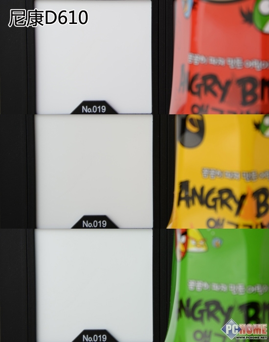 相信资深的读者已经发现了测试中的一个BUG,就是三种色彩的瓶子由于反光的原因也对019号色板产生影响。在向各位说抱歉的同时我们也不难发现除此之外尼康D610的白平衡抗干扰能力的确非常强劲。别走开,好戏还在后头。