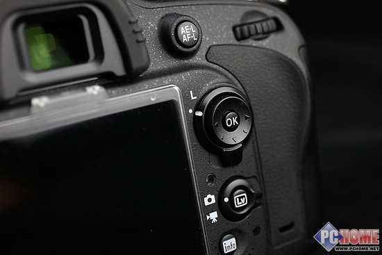 虽然右手大拇指可以轻松操作到机身右边区域的收有按键,但是导航键略显袖珍不适合拇指偏大的用户,而AE、AF锁定键附近又显得过为宽敞。