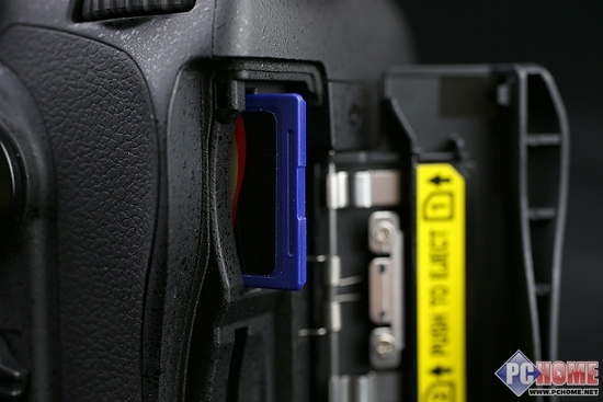 尼康D610官方表示机身具备防水溅能力,仔细观察卡舱部分的周围的确植入着一圈密封橡胶,理论上一般的小雨对它绝对不会构成威胁。