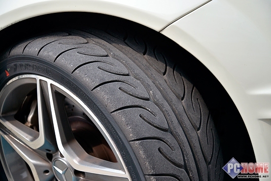 经过高速运行之后的轮胎表面磨损也被描写的淋漓尽致。也许有朋友会问为什么会拍摄这么一张照片呢?因为越是这种单一色彩且反差较弱的表面才是证明一台相机表现能力是否足够优秀的最有力证据,尼康D7100这方面的表现令笔者非常的满意。
