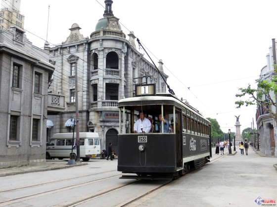 旧上海南京路的上的铛铛车
