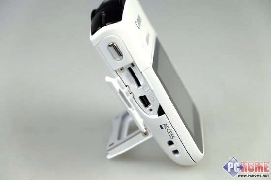 在机身的左手边,功能插槽和手持录制按键均在此处,当我们手持单手抓握的时候,并不觉得别扭,相反经过实际使用手感非常不错。
