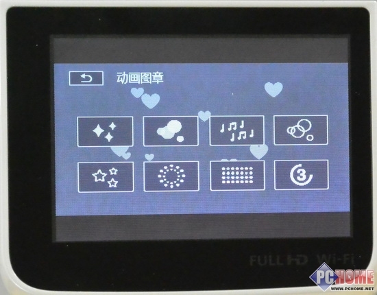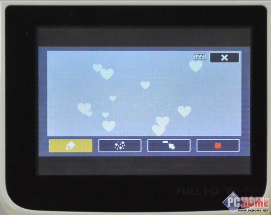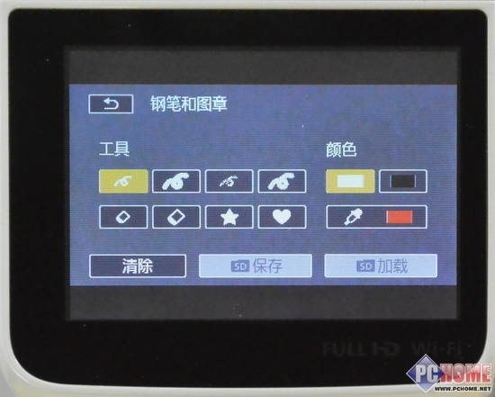 我们可以通过选择“钢笔和图章工具”来对拍摄中的画面在LCD上进行涂抹绘画,同时记录在存储卡中,拍摄出比较有趣味的视频作品。
