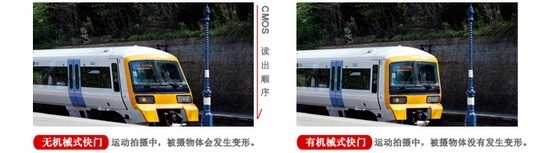 由于工作原理的原因,使用CMOS感应器拍摄高速运动物体的时候往往会拍摄到如下图左侧那样的变形画面。而LEGRIA mini采用了可兼做光圈用的机械式快门,有效地解决了这个问题。