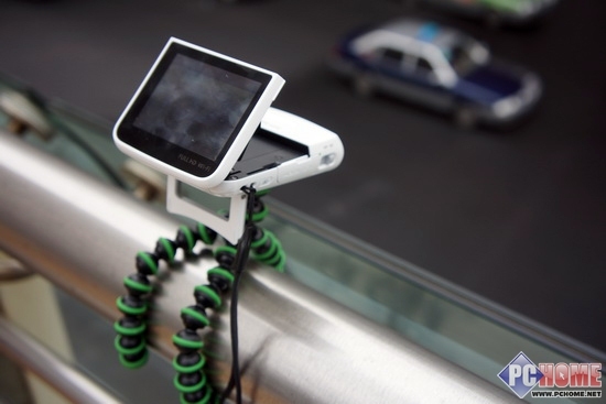 即使这样抓握在手里,乐格力雅MINI也能非常轻松的拍摄。在DV的镜头处,我们看到有了个麦克风口,这样能够起到非常好的收声效果。
