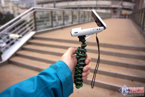 MINI的机身底部的支架非常紧致,可以调节任意角度来实现拍摄,但是这里如果选择网状支架,似乎会更加便捷。