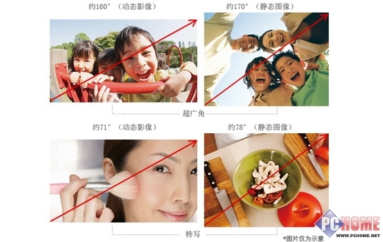 | 镜头特点 | 对角线视角(超广角/特写): 静态影像:约170°/78°, 动态影像:约160°/71° |