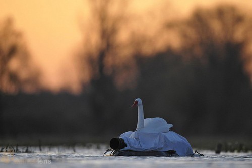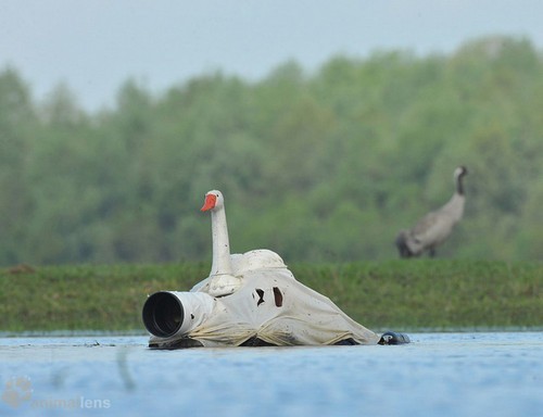 我们可能会想起伪装成天鹅的生态摄影师Henryk Janowski。这位摄影师拿着尼康D3x及600mm长镜头,笠着假天鹅,穿上潜水衣,在河道中游来游去及拍摄,真正接近这些在水上活动的野鸟。根据 他的经验,原来真的可以大大减少人类对他们的干扰,并且自由地在水中穿梭,拍下最接近又最自然的画面。