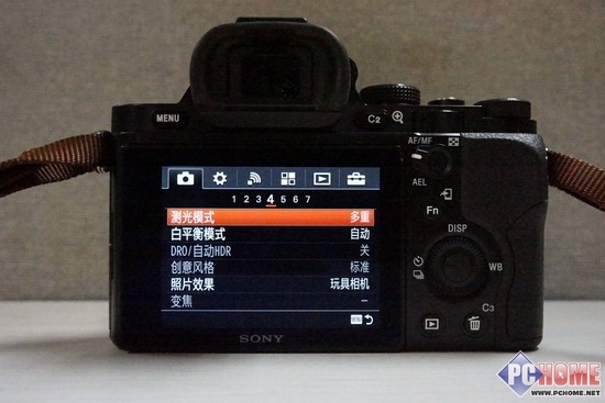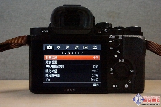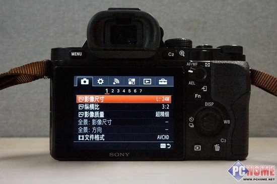 按键的位置经过了调整,A7与索尼单电相机拥有一定的相似度,一度以专业微单著称的NEX-7似乎从按键布局上已经明显没有办法赶超A7。