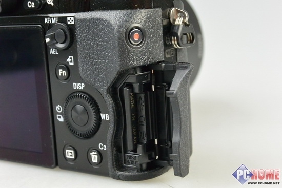 电池仓依旧位于手柄的下方,但是这里的设计并不痛以往,电池仓没有了存储卡的安装区域,将存储卡移至了电池仓的外围,拥有一个独立的区域。这样的设计也颇具专业。