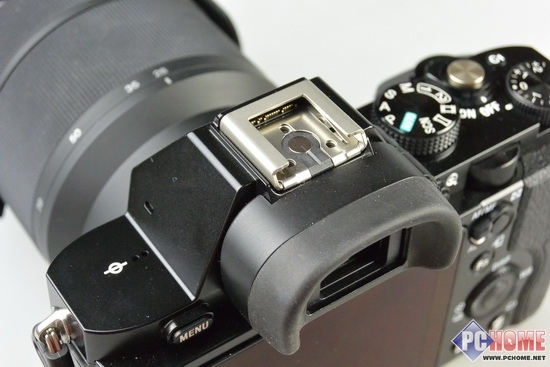 再来说说操作方面,我们看到索尼NEX-7沿用的是老一代的索尼闪光灯的热靴卡口,并且所有的操作模式,甚至模式拨盘都在系统中选择,这无疑是增加了产品的耗电量,而且双拨轮的位置所在虽然方便,但是依旧会有误操作的可能;而索尼A7采用了最新的索尼热靴卡口,支持目前单电相机用的闪光灯,同时模式拨盘和曝光补偿拨轮位于机身的上方,可以无缝切换,并不需要到菜单中选择。这一点明显占优。