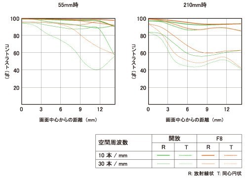 尼康55-300mm f/4.5-5.6G VR镜头为11组17片设计,配备了SWM驱动马达以及VR光学防抖系统,后者可以降低3档的快门速度仍能获得锐利影像。该镜头最近对焦距离为1.4m, 对角线视角为28度50分-5度20分,最大放大倍率为0.28倍,适合拍摄一些远处的景物,并能够得到锐利的图像,是专业摄影师经常使用的一支镜头。