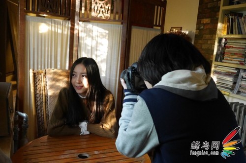 本次拍摄中是模特自己准备的两套服装,因为是校园片,所以模特特意准备了简单复古的大衣,学院深灰毛衣和蓝色清新格子裙。在拍摄中,拍摄外景以复古外套和毛衣为主,随后进入咖啡馆拍照,选用的是蓝色格子裙,能更好的和环境搭配。