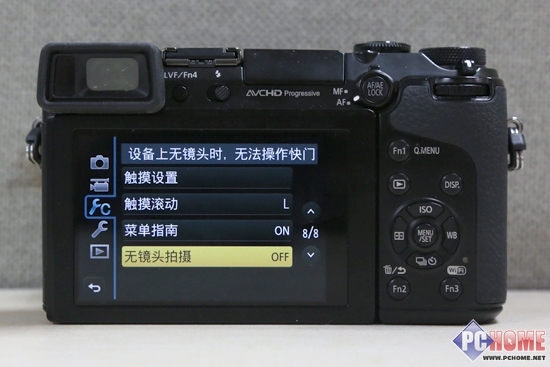 松下GX7对待按键方面也是独具匠心,在手柄延伸的地方增加了一块胶块。另外在按键和拨轮的地方进行了一定的位置调校,感觉上操控又有所提高。不仅这样,还增加了几枚Fn按键。让我们对这款产品的各种功能也增加了不少期待。