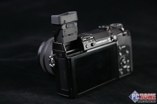 不得不说的就是这枚可90°翻折的电子取景器。这个设计在微型单电相机上算是首创了,这能够让使用者在任意角度进行拍摄。