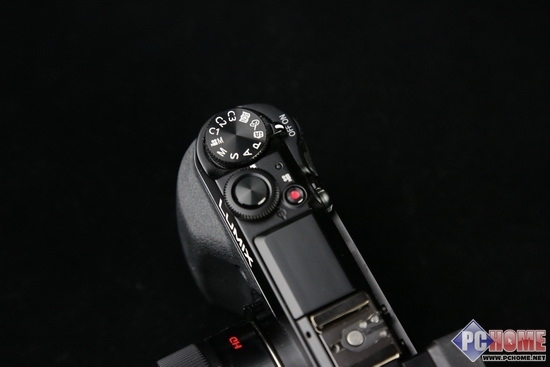 在机身的右肩位置,依旧是开关和快门按键,模式拨盘,这一点应该不是不会发生变化,用户在使用的时候模式拨盘非常紧致,这样大大减少了误操作的可能。快门下面同样也是一个拨盘,可以自定义光圈还是快门的参数调节。