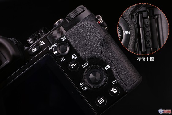 索尼全画幅微单TMA7R在存储卡槽设计为单卡槽,支持自家的记忆棒和SD存储卡,当然为了更好的匹配高像素需求建议用户选择Class 10及以上的大容量存储卡,否则经常换卡和遇到拍摄的时候卡顿是非常令人遗憾的事情。由于整体机身已经非常紧凑,因此仅为单卡槽设计的可以理解,只是开合的位置朝向用户,而笔者也许是习惯的原因比较适应侧面开启的安排,而在开启索尼全画幅微单TMA7R的存储卡槽的时候还是有些小不自然,不过相信这是可以被慢慢地使用过程中渐渐调整的。未来是否在下一代产品设计双卡槽设计,第二卡槽可以作为备份或扩展出现还是非常有必要的,因为一般中高端的机型都会配备双卡槽设计,当然如今的SD存储卡等容量已经呈几何增长,32GB/64GB等或更高规格的存储卡都非常的常见和便宜。