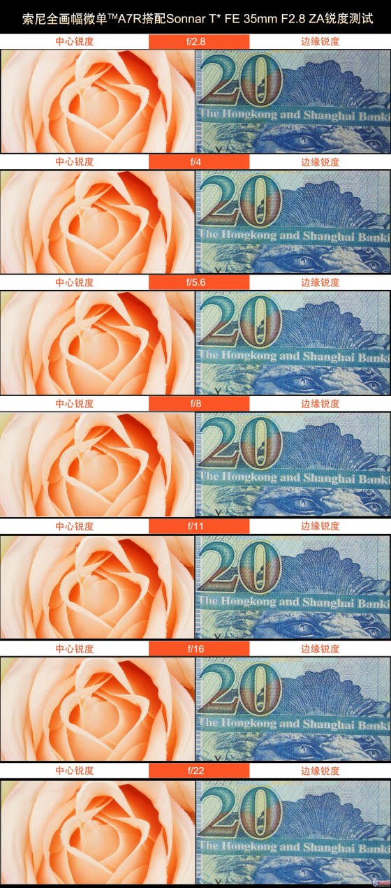 索尼全画幅微单TMA7R搭配Sonnar T* FE 35mm F2.8 ZA中心/边缘锐度测试