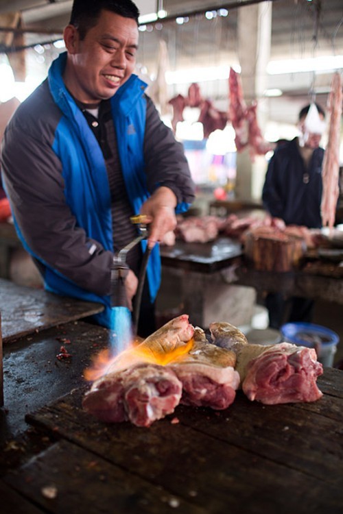 第三幅 2013年春,开平赤坎古镇市场,我只说了三个字“好猪脚!”后面的拍摄也就变得顺理成章。