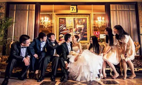 那是在内蒙集宁的一场婚礼,伴娘伴郎很多,所以我们在仪式前抢时间建议他们在电梯口拍了一张。当时觉得环境和大家状态都不错。f/18,1/1250 秒,ISO 400。