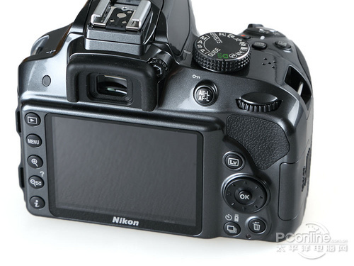 由于体积变小了,按键数量和体积不变的情况下,D3300的操作空间的确是变得更小了。另外3英寸显示屏也占据了绝大部分的机身背部面积。