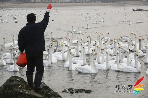 在荣成烟墩角村,当地人会在每天固定的时间投喂天鹅。从生态摄影角度来看,这种做法并不值得提倡。首先,投喂可能会改变天鹅的觅食和迁徙的习惯。如果天 鹅的幼崽受到长时间投喂,则可能会滞留在迁徙途中,最终无法适应当地的环境而死亡。上面我们谈了一些拍摄野生动物的注意事项,下面我们再来向大家介绍一些 拍摄野生鸟类的技巧。