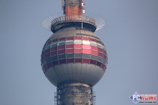 笔者在外滩拍摄了一张东方明珠的局部特写图。想必去过外滩的朋友们都知道,东方明珠电视塔最高的那颗球体在外滩观景平台上看过去是非常小的。而通过笔者接到佳能EOS 70D机身上之后,600*1.6=960mm的超长焦距下就能够把东方明珠这颗球体拍到如下图所示的大小,令人叹为观止!