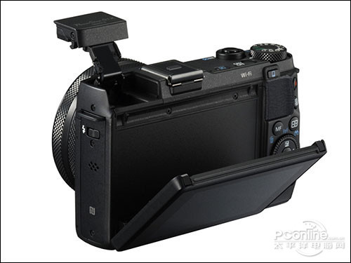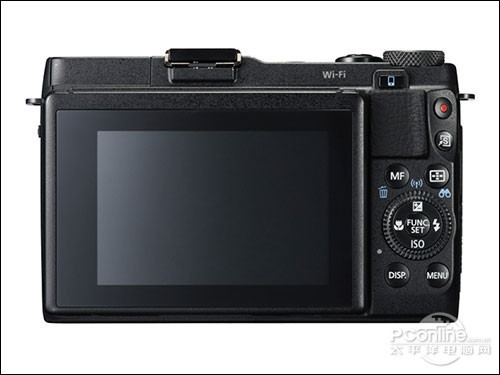 佳能G1X Mark II的另外一个改变是液晶屏,带有G系列特征的翻转屏再次取消(前几代G系列产品也有固定屏设计,包括最新的G16)。取而代之的是新设定的折叠屏,支持180度前翻和45度下翻,但是不能左右翻转。另外该液晶屏为3英寸104万像素的触摸屏,所以在使用方面非常方便,新设定的31点对焦框覆盖范围相当广,配合触摸屏使用可以大幅度提高对焦效率。
