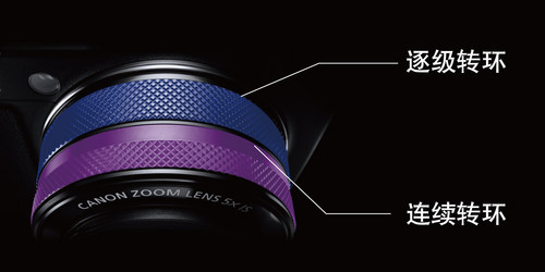 佳能G1X Mark II设计了两个镜头哦转换,提供了不同的转动手感,具有档位的转换和无级转环可以自由设定相应的功能。显然,不同手感的转换在不同场合下可以发挥相机的最佳状态。